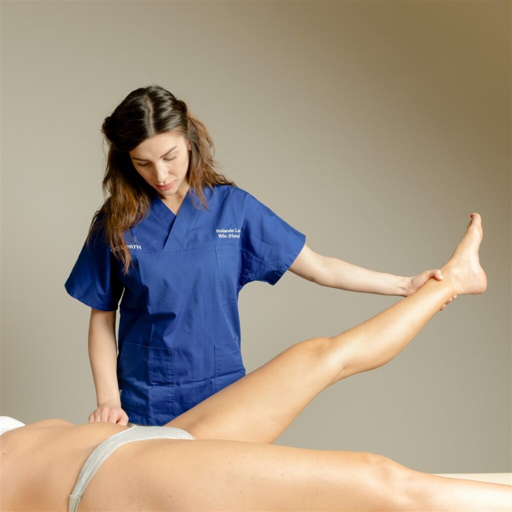 L’osteopata effettua una valutazione posturale, esamina le aree dolenti e applica tecniche manuali mirate per ridurre il dolore.